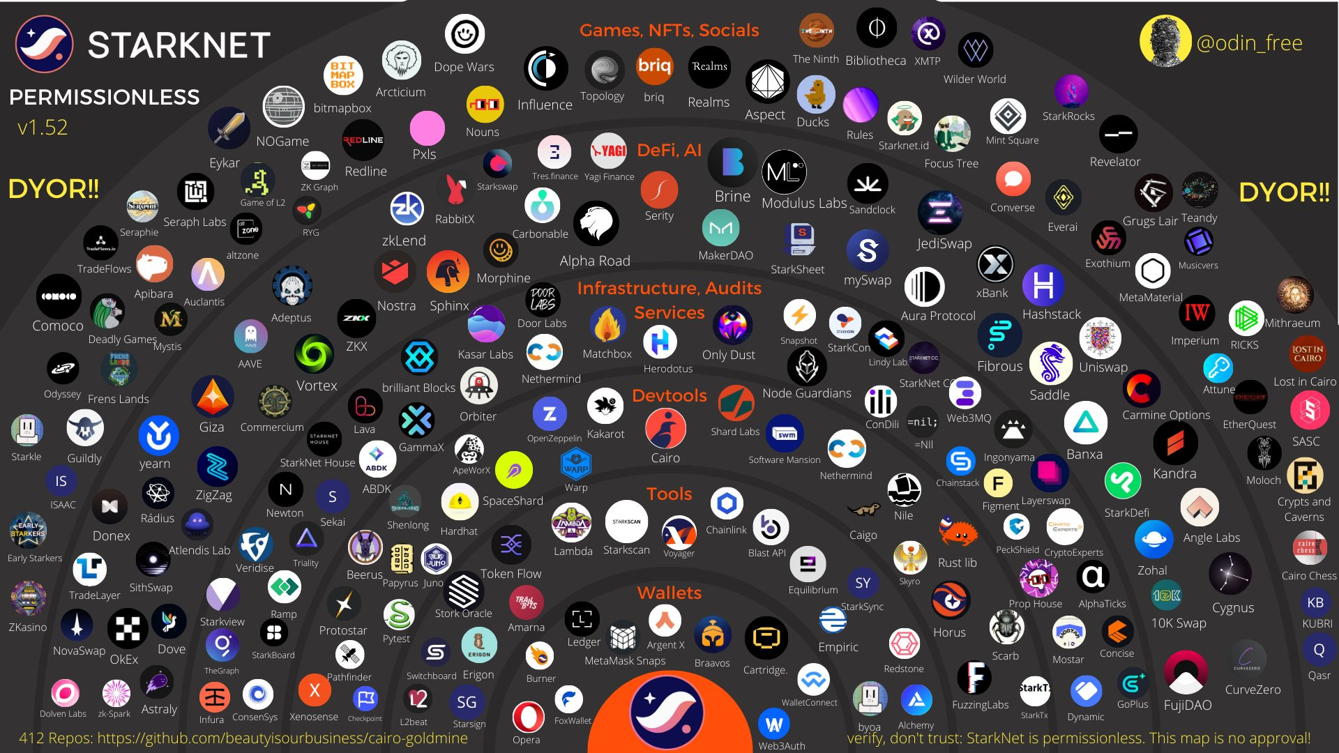 @Starknet_OG - Here is a breakdown of the #Starknet ecosystem - Here is a compartmentalized map of all active Starknet projects